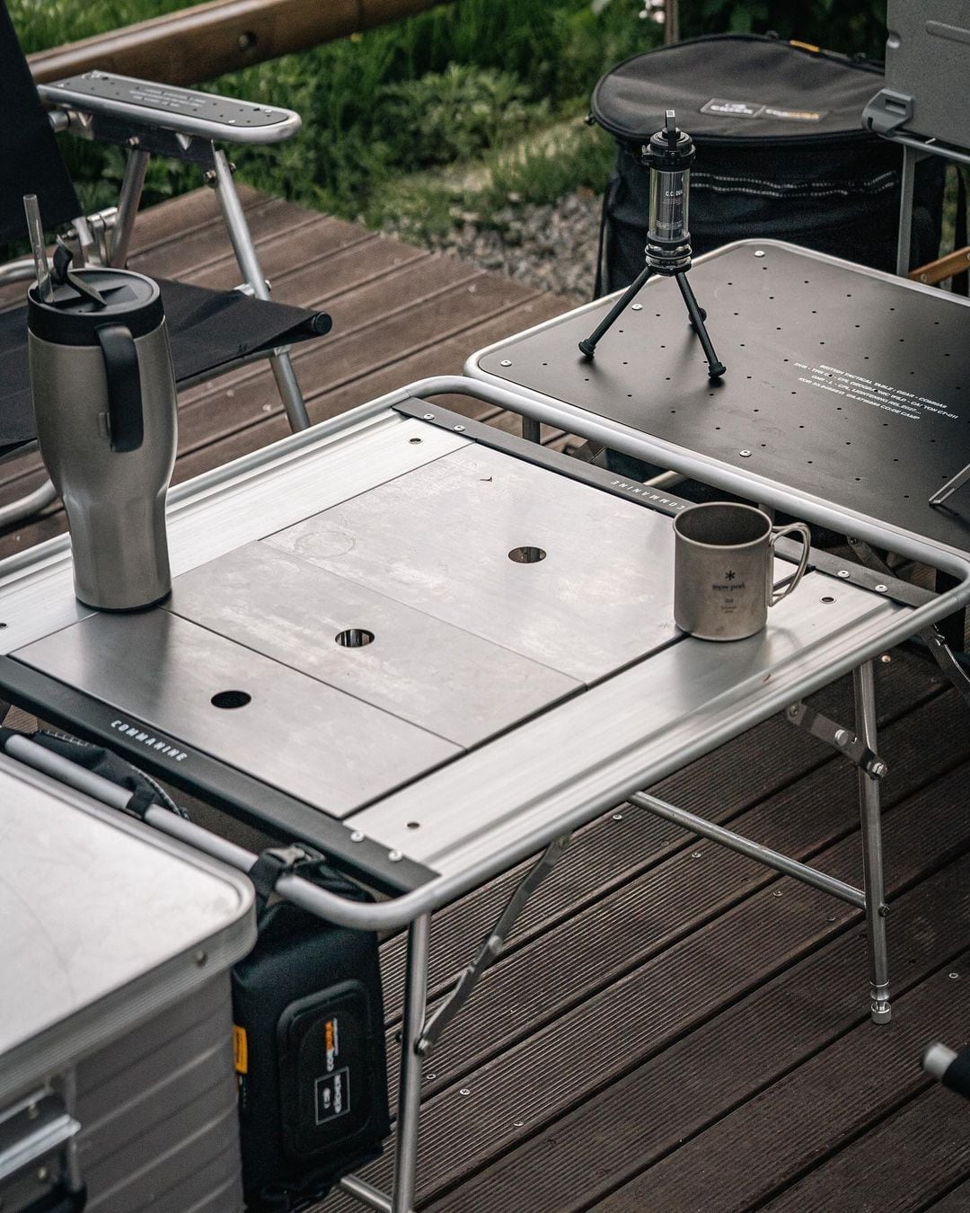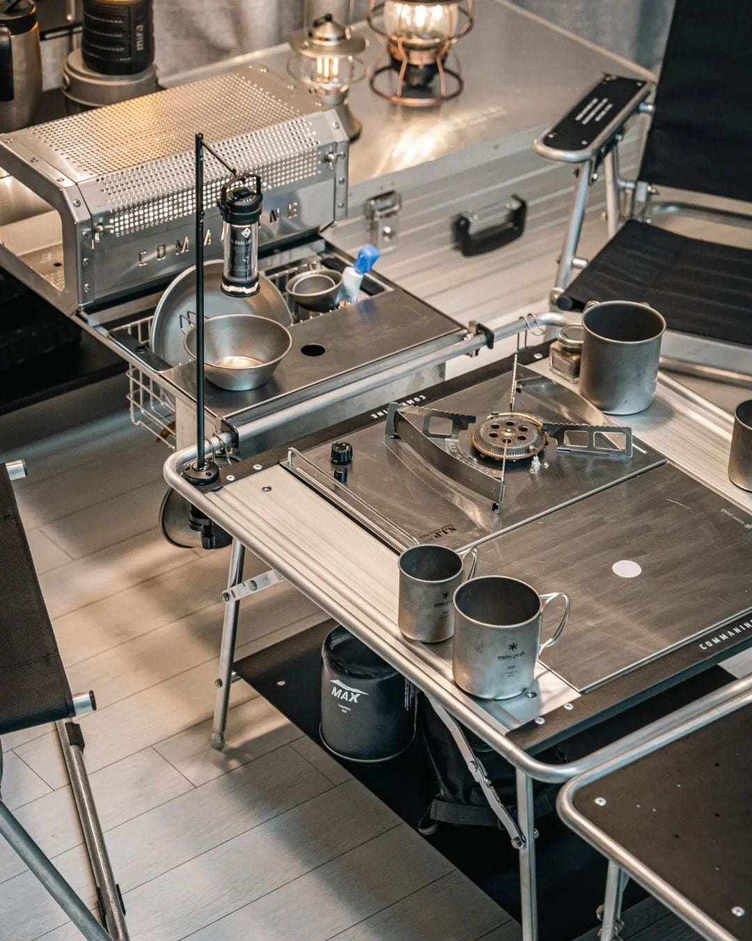 フラットバーナー等、IGT企画製品にフィットし、別売りの天板を付けることでテーブルやシェルフとしても使用することも可能。